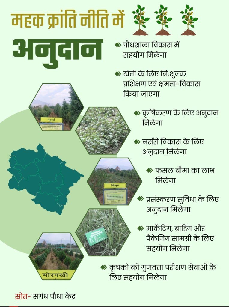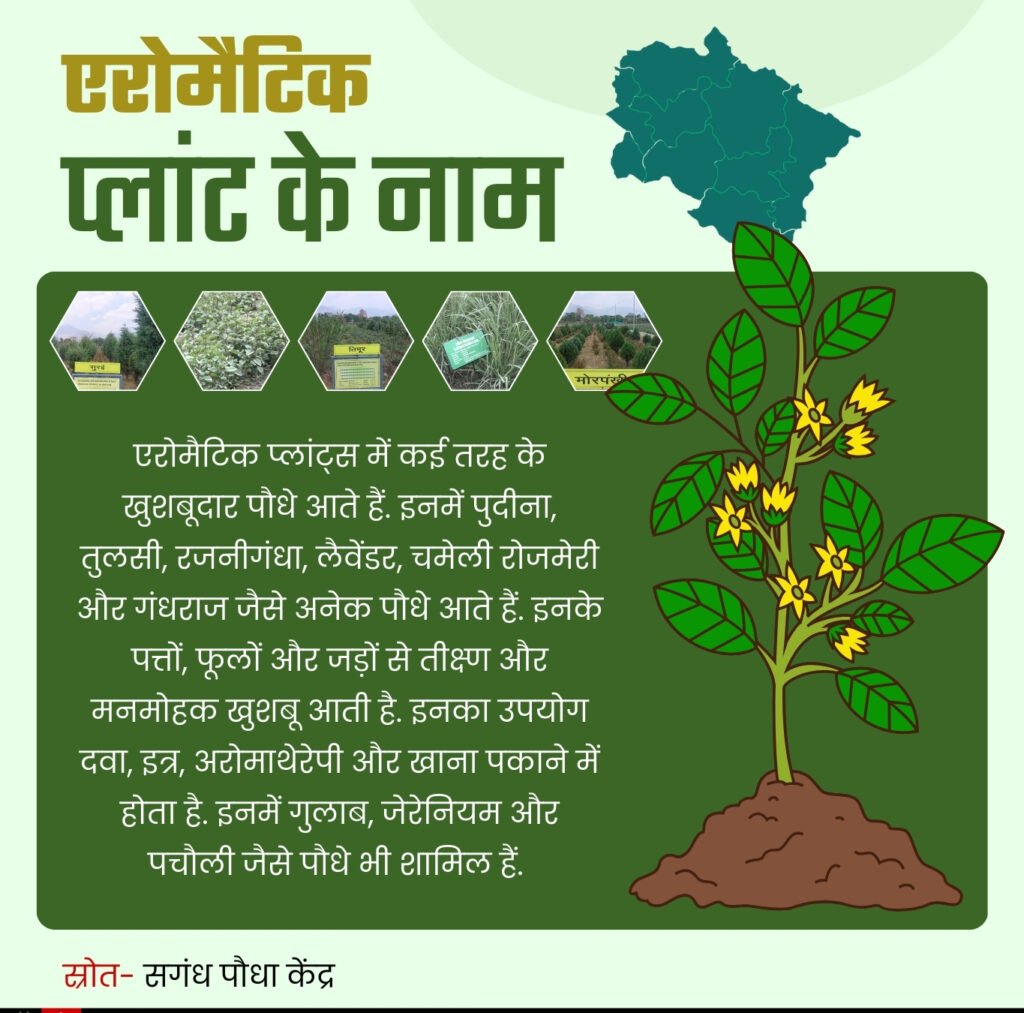 राज्य में एरोमैटिक फार्मिंग को बढ़ावा देने को लेकर सरकार ने उत्तराखंड महक क्रांति नीति लागू की है, 7 एरोमा वैलियां विकसित होंगी..