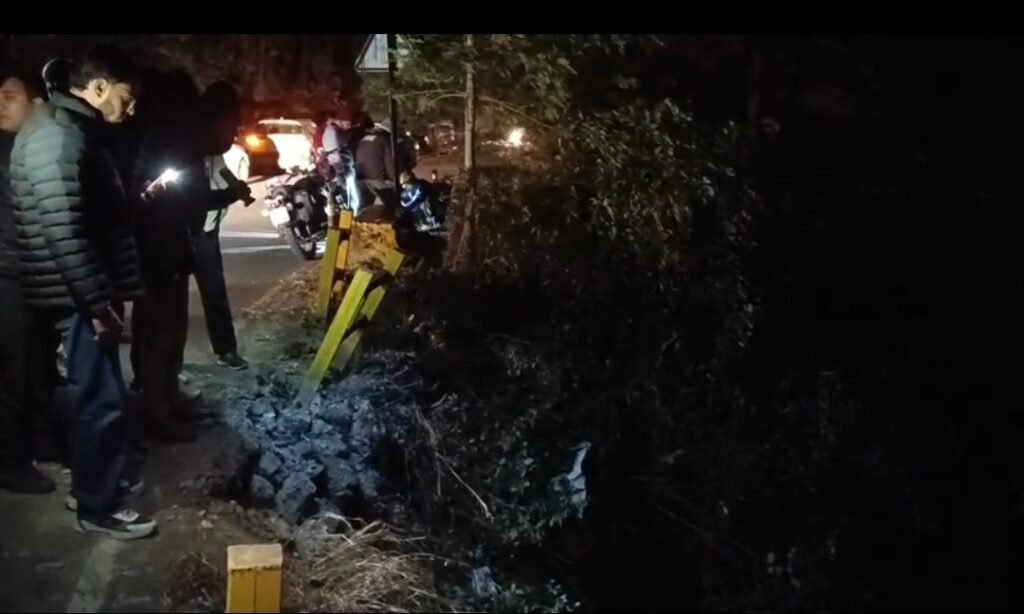 अनियंत्रित कार खाई में समाई, बड़ा हादसा टला नैनीताल से राहत भरी खबर सामने आई है, जहां नैनीताल–हल्द्वानी मार्ग पर पर्यटकों से भरी एक कार अचानक नियंत्रण खो बैठी और सड़क किनारे रेलिंग तोड़ते हुए गहरी खाई में जा गिरी। बताया जा रहा है कि कार तेज रफ्तार में थी और ओवरटेक करने के दौरान संतुलन बिगड़ गया, जिसके चलते यह हादसा हुआ।